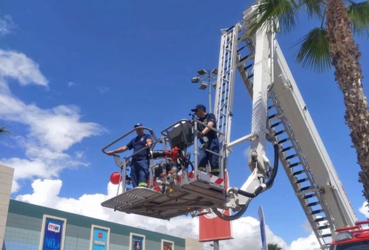 В процессе учений будет использован телескопический подъемник, который поможет пожарным «эвакуировать» людей с верхних этажей многоэтажного здания.